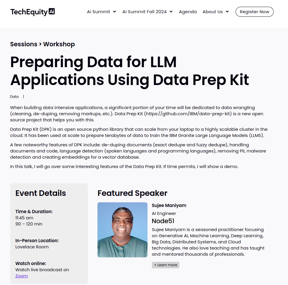 Gave a presentation and demo on Data Prep Kit - an open source toolkit to help prepare data for LLM applications.