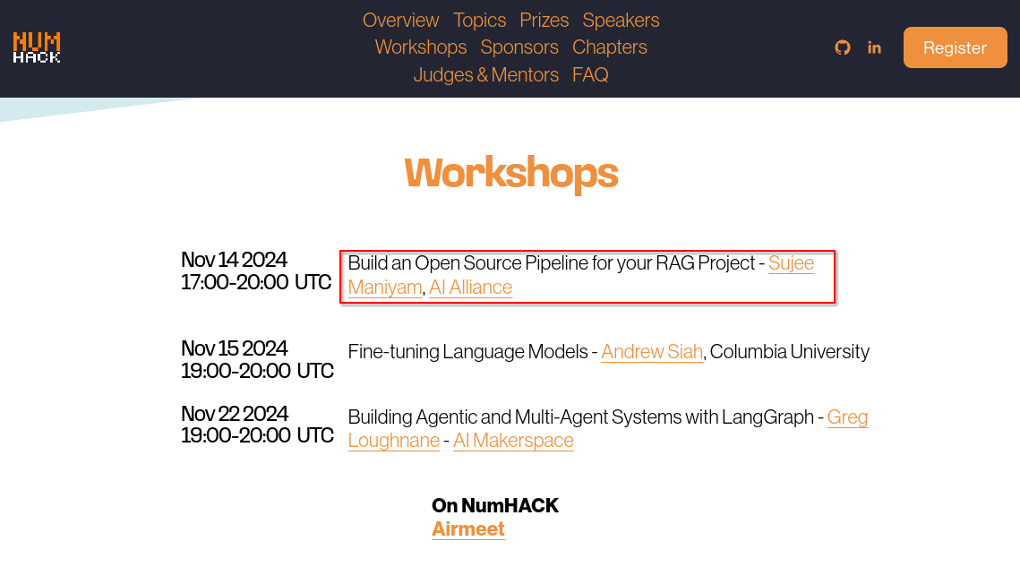 My workshop is: Build an Open Source Pipeline for your RAG Project